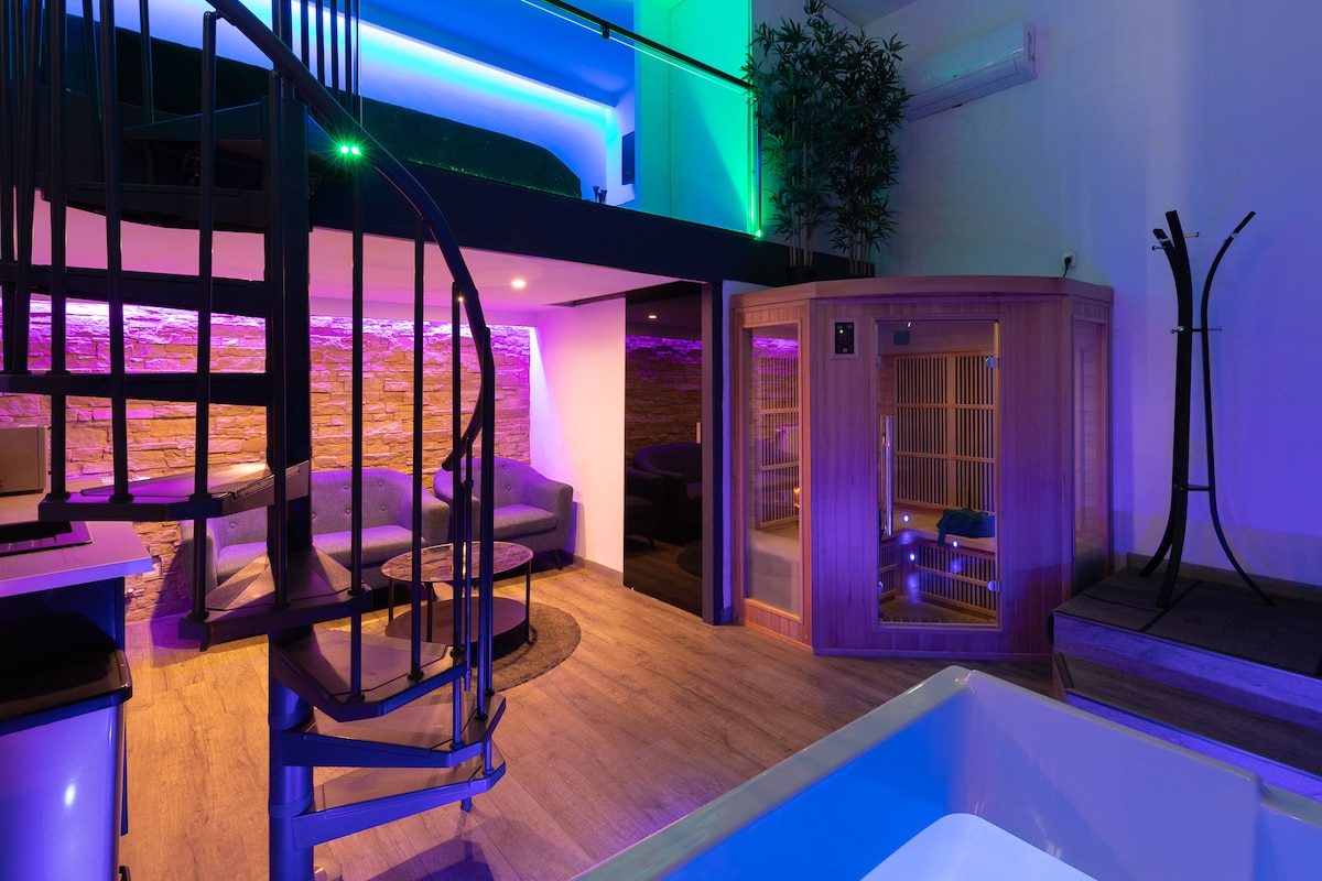 ✨ Escápese a un lugar fuera de lo común, donde el lujo y la sensualidad se encuentran. Balneario privado, sauna, sillón tántrico y zona de juegos de mesa te invitan a la relajación y el placer. Déjese sorprender por una experiencia inmersiva única: un misterioso juego de acertijos diseñado para sumergirlo en una aventura íntima y llena de sorpresas. En este entorno refinado, todo está pensado para parejas que buscan complicidad: un ambiente elegante, luces suaves y comodidad de alta gama.