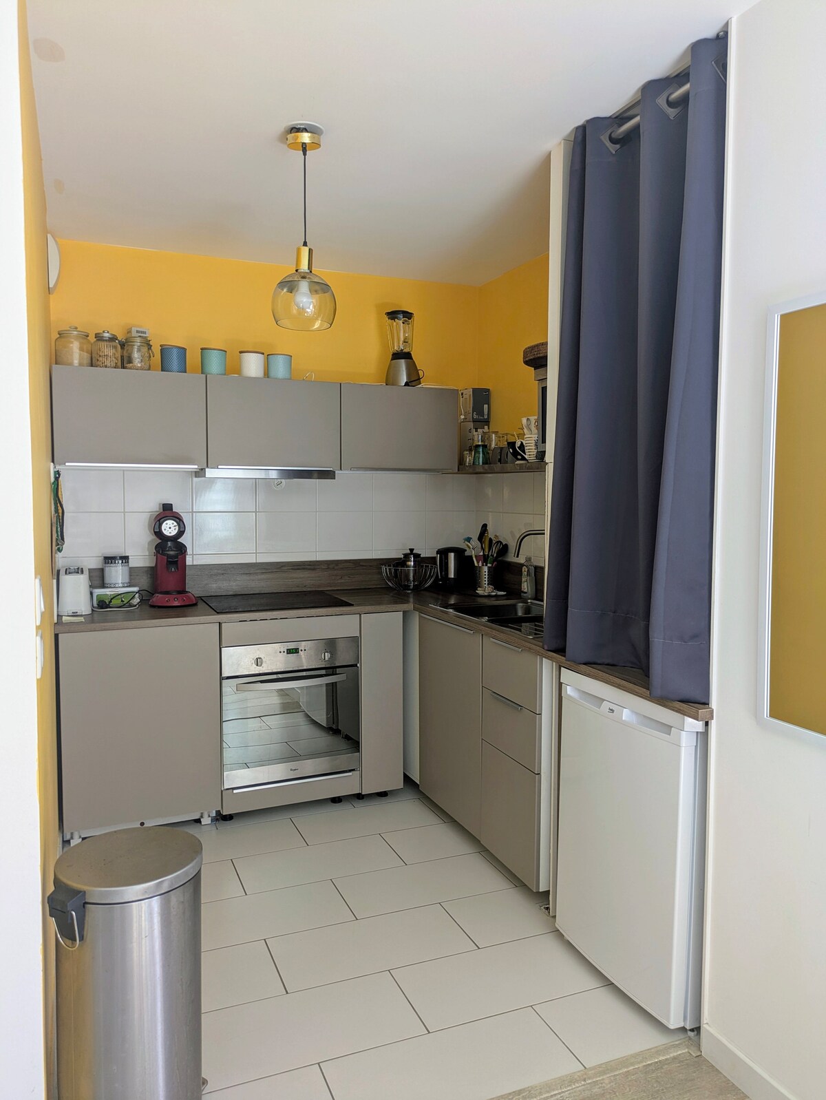 alojamiento entero 2 viajeros 3ª planta sin ascensor de una residencia en el corazón de Saint Briac El apartamento es muy luminoso y muy funcional que consta de una entrada, cocina, sala de estar, 1 dormitorio y 1 baño ( bañera) muchos comercios cercanos solo se tardan 15 minutos a pie para ir a la playa , hermoso paseo por los alrededores , el campo de golf , el balcón esmeralda, el castillo de nessay etc..