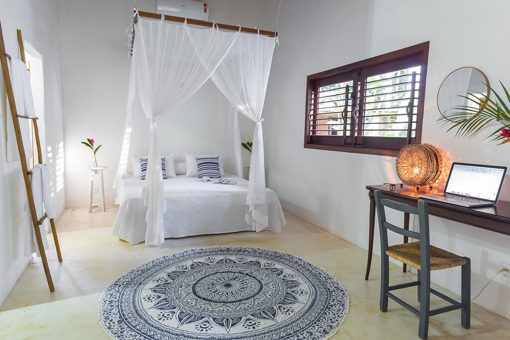 Nuestra pequeña casa fue diseñada con un gran afecto para brindar el máximo confort a nuestros huéspedes, desde un increíble jacuzzi súper privado en la terraza de tu suite, ropa de cama de 400 cables hasta un excelente Internet de fibra óptica de 200 Mb para aquellos que están en casa. Nuestra villa tiene 2.200 metros cuadrados con hermosos árboles que proporcionan un espectáculo separado. Tenemos visitas diarias de 3 especies de monos, varias aves e incluso animales perezosos. :) Estamos a 2 km de la plaza y a 3 km de la playa + la playa cercana y cerca.