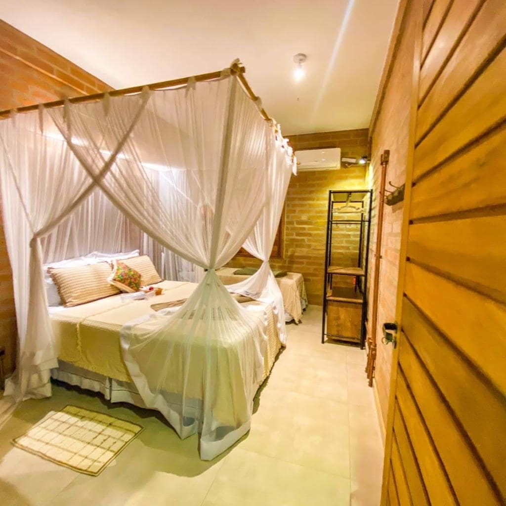 Quer algo íntimo e aconchegante? Essa suíte de 13 m² é ideal! Gostosa e bem pensada, tem tudo que vc precisa para passar dias deslumbrantes em Caraíva. A varanda com rede é perfeita para relaxar, enquanto o som dos pássaros cria um clima de tranquilidade O chalé Aroeira oferece cama de casal, banheiro, ar condicionado, e varanda privativa com mini-cozinha. Tudo isso dentro da Vila Bhakti, um espaço de 2000m2 pensado para descansar e se conectar com a natureza. Temos mais 4 chalés privativos.