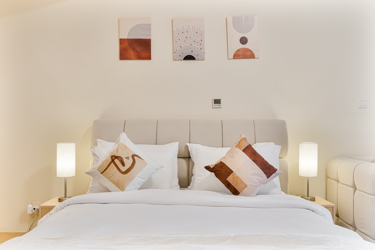 Este lugar único tiene un estilo propio. Bienvenido a tu elegante estudio en JVC, donde la comodidad moderna se encuentra con la comodidad urbana. Comienza el día con café de especialidad recién hecho desde la máquina de café de grano a taza mientras disfrutas de las vistas desde tu balcón privado. El estudio cuenta con una acogedora cama de tamaño king, una elegante cocina pequeña y un baño moderno. Perfecto para una estancia tranquila e inolvidable en Dubái. ¡Reserva tu estadía ahora!
