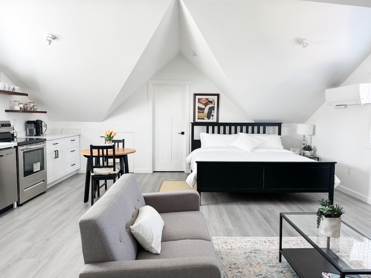 ¡Moderno y acogedor apartamento en la ciudad + estacionamiento + aire acondicionado + se admiten mascotas!