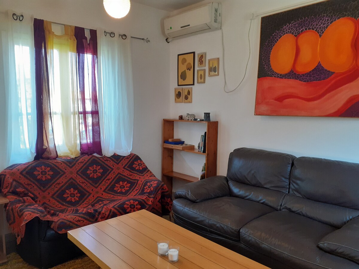 Una auténtica experiencia Kibbutz. Apartamento de 1/5 habitaciones con mucha luz, y un patio fresco donde puede relajarse. 30 minutos en coche de cualquier atracción en el galilee. Desde Zefat y el mar de Galilea en el sur hasta las alturas del Golán y Metula en el norte. Muchas bicicletas individuales, escalada y caminatas cercanas. En el sammer puedes usar la encantadora piscina de kibbuts.