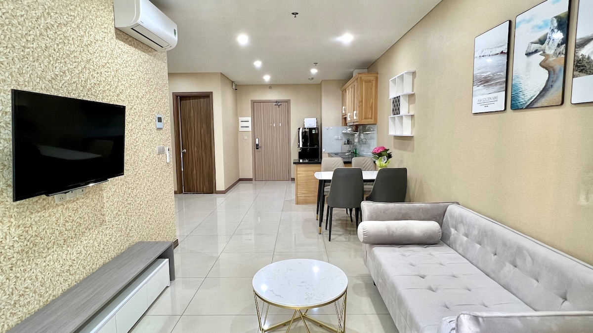 El departamento se ubica en el edificio de departamentos Ha Do Centrosa, en la calle 200 Ba Month of February, distrito 10, HCM. El interior está totalmente equipado con comodidades como parques, áreas de juegos infantiles, supermercados, cafés, restaurantes, farmacias, lavandería... El departamento está recién diseñado, es moderno, de clase alta, es conveniente para mover los distritos centrales. El departamento tiene una superficie de 86 m2 que incluye 2 dormitorios, 3 camas y 2 tolets totalmente amueblados para 6 personas. ¡Es un placer hospedarte!