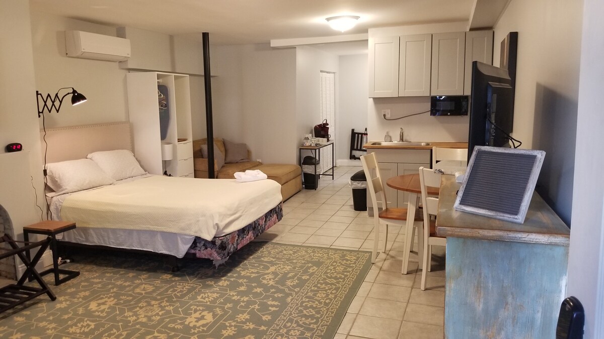 Estudio con cama tamaño king, estacionamiento gratuito, camina a todas partes