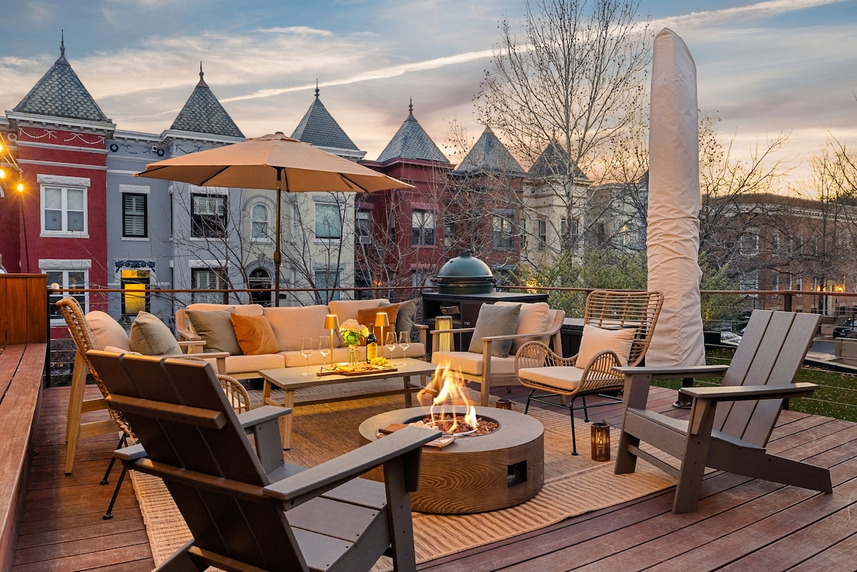 Casa de lujo en DC Row con estacionamiento y fogata