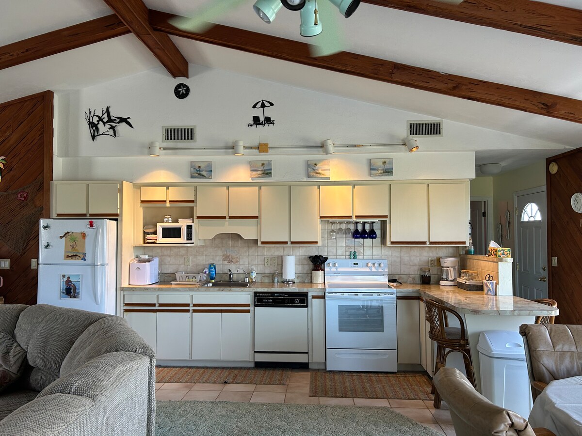 The newly remodeled Cypress Crab Cottage is a quaint little cottage with 1 bed and 1 bath, tile floors, ceiling fans, & vaulted ceiling. A full kitchen with gas stove is now installed. A queen size bed, closet, full bath, & a leather sleeper (queen) couch round out the inside. The bathroom has a walk-in shower, pedestal sink & elongated toilet. Outside is a grill with a side burner. A large, screened porch with picnic table, outdoor seating, lights & fan. Private circular drive.