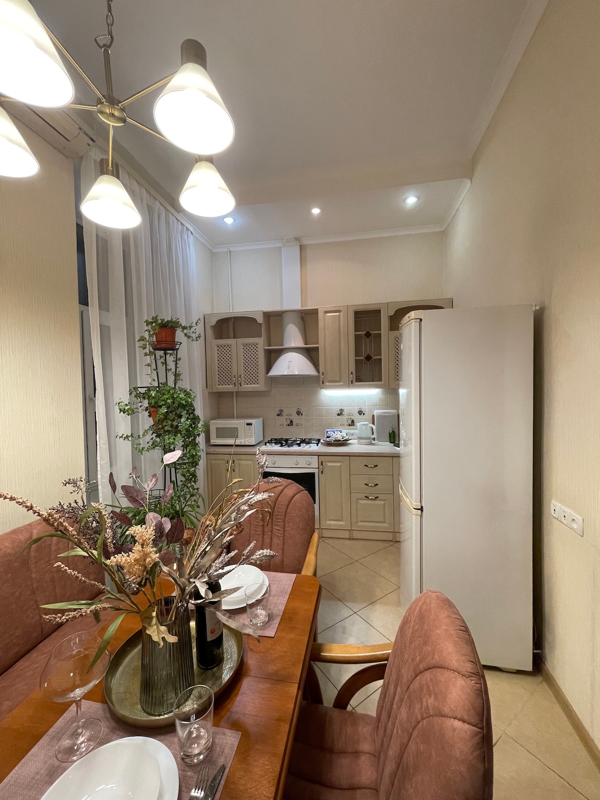 Los apartamentos están ubicados en el centro de la ciudad. El apartamento luminoso y acogedor está hecho con un estilo clásico exquisito. Hay todo lo que necesitas para una estadía cómoda. ¡Alto nivel de servicio!