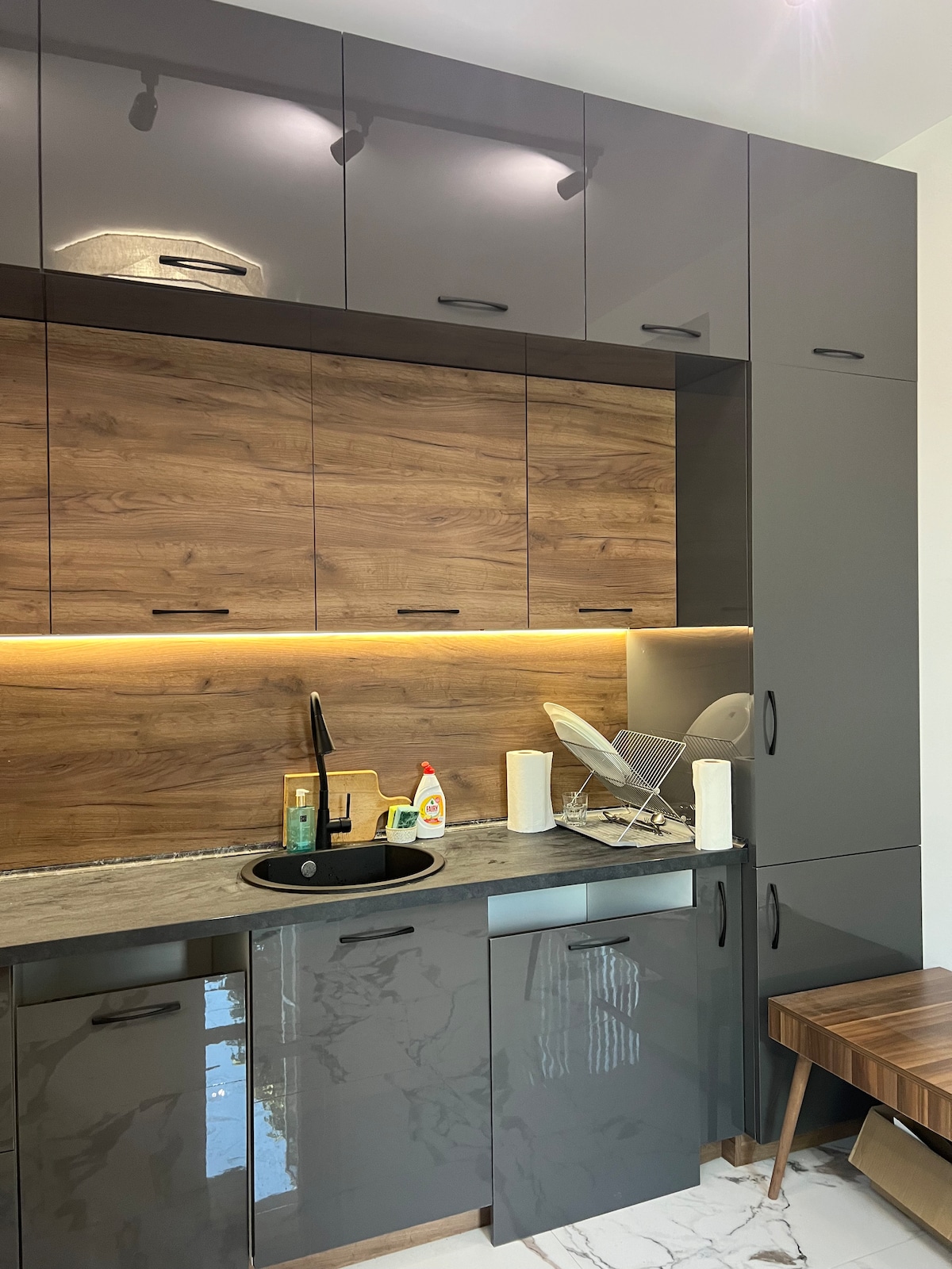 Disfruta de una experiencia con estilo en este lugar céntrico. El apartamento ofrece a los huéspedes: 1. Dormitorio grande con espacio de almacenamiento y TV. 2. Cocina totalmente equipada con todos los electrodomésticos necesarios. 3. Mesa de comedor con 4 sillas. 4. Zona de relax con TV. 5. Internet de alta velocidad. 6. Aire acondicionado en cada habitación. 7. Lavandería con lavadora y secadora. 8. Baño moderno. Forma de alojamiento: El check-in lo realiza personalmente el anfitrión.