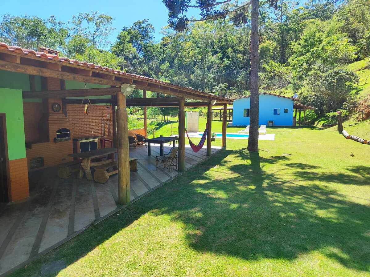 Casa de campo ubicada en la ruta de los Ipês, cerca del centro de Domingos Martins. Hay alrededor de 10.000 m2 con área de esparcimiento exclusiva, salón de baile, parrilla, horno de leña, piscina, billar, barras, parque infantil, huerta con numerosas especies de árboles frutales, gallinero y pecera. Las araucarias y otros árboles y plantas atraen numerosas especies de aves que hacen que la estancia sea más atractiva. Ya sea en el calor del verano o en el frío del invierno, ¡ven a descansar con familiares y amigos!