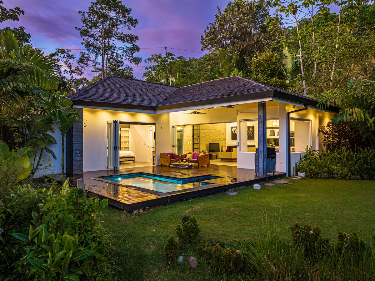 Bienvenido a The Lost Lemon 🌿 Tu escapada tranquila a la selva te espera. Esta encantadora casa de 2 dormitorios con aire acondicionado está convenientemente ubicada en medio de Playa Hermosa, con una piscina privada para una relajación total. Pasea 20 minutos hasta la playa o quédate y disfruta de la tranquilidad de los limoneros, plátanos, piñas y exuberante vegetación. Mejora tu estadía con yoga o un masaje relajante, o simplemente relájate junto a la piscina y deja que la selva calme tu alma.