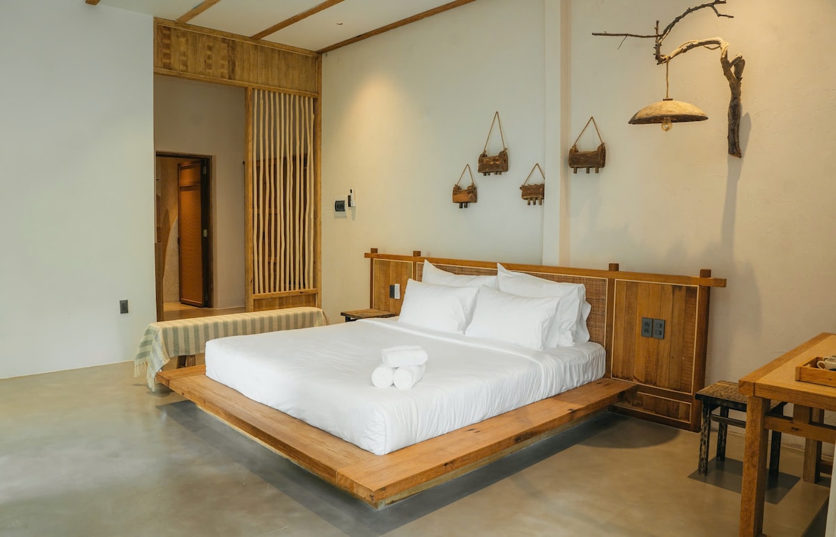Phòng riêng nhìn ra khu vườn, ngập tràn ánh sáng tự nhiên và không khí trong lành. Nội thất gỗ mộc mạc, bố cục gọn gàng tạo cảm giác ấm áp và dễ chịu. Đây là lựa chọn lý tưởng cho khách yêu sự yên tĩnh, nghỉ ngơi nhẹ nhàng hoặc lưu trú dài ngày giữa không gian xanh của Nông Lâm Ecolodge.