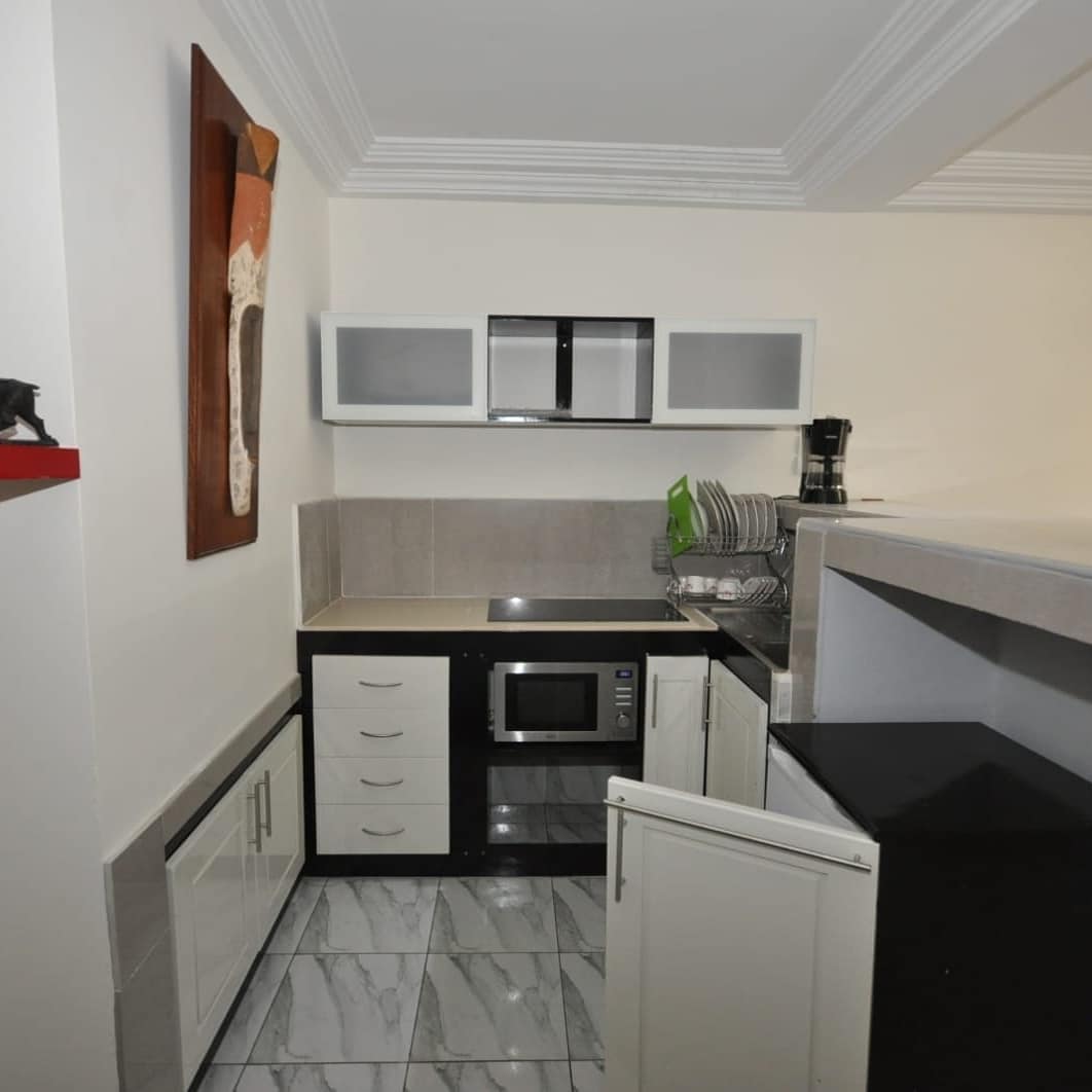 Apartamento F2 , moderno y elegante ubicado en el corazón del exclusivo barrio Bonapriso - Tiempo en Douala Estamos justo en el corazón de la ciudad y a 5 minutos del aeropuerto en un entorno seguro y tranquilo. Le ofrecemos un servicio de limpieza diario además del desayuno gratis .