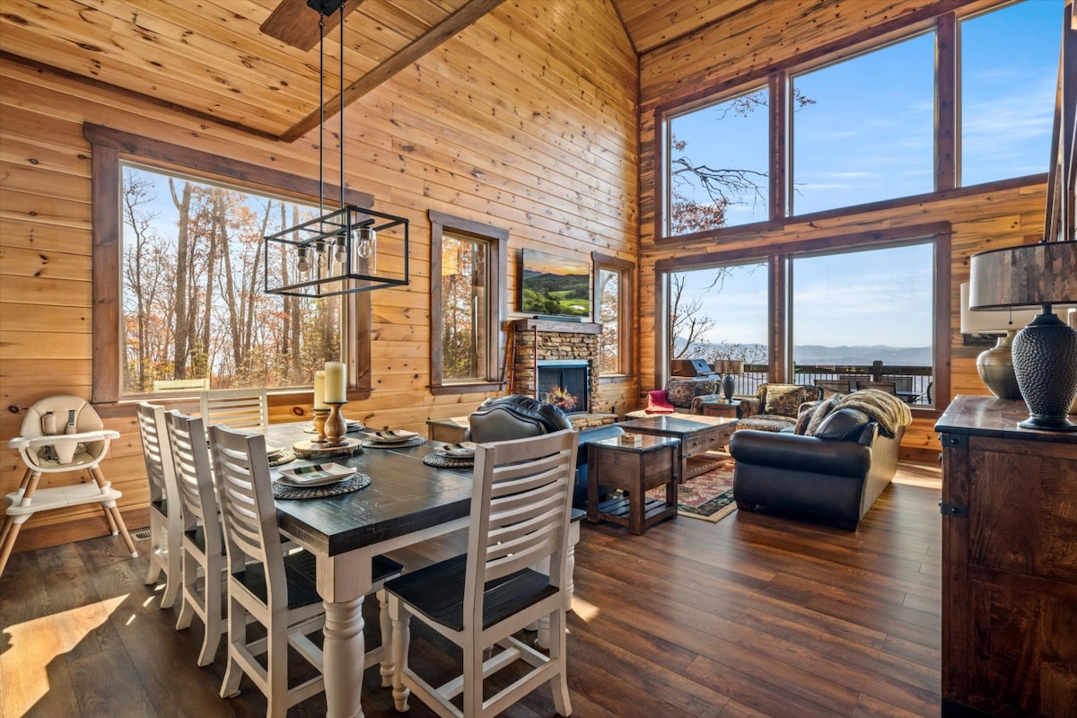 NEW! Amazing Lake VIEWS Log Cabin+Hot Tub+Arcade!