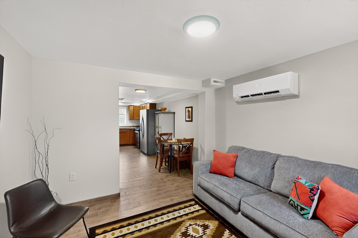 Esta casa moderna, cómoda y bien equipada será tu hogar lejos de casa mientras visitas la hermosa Albuquerque. 1 dormitorio, 1 baño e incluye un sofá cama tamaño queen. Lavadora y secadora también incluidas. ¡Excelente ubicación céntrica! Restaurantes, cervecerías, tiendas de comestibles, bares, museos y tiendas están todos muy cerca. Acceso rápido al casco antiguo, al centro de la ciudad, a las autopistas, al aeropuerto, al centro de convenciones, al Centro Cultural Indian Pueblo y al río Grande.