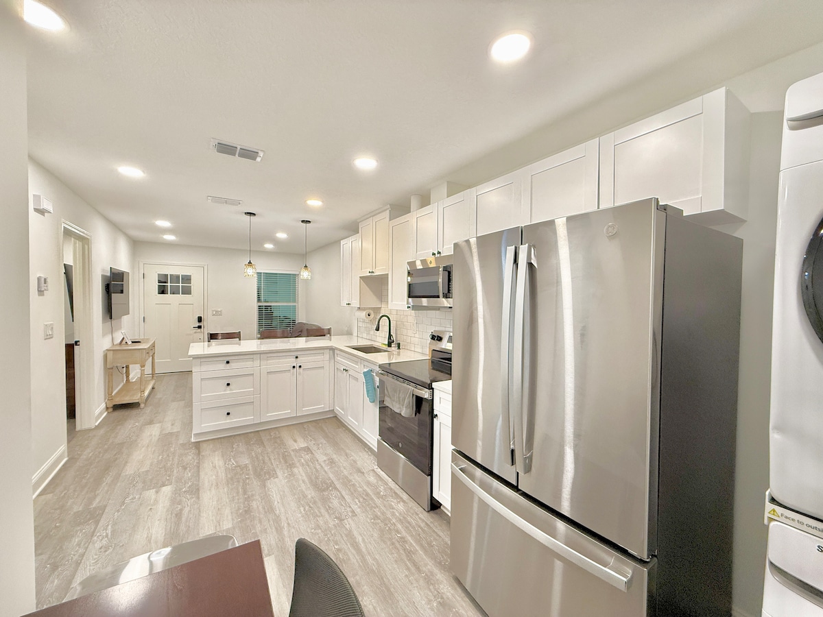 Apartamento PRIVADO en un edificio de 4 condominios independientes. Ahora con alfombra (no se muestra en las fotos). No hay espacios compartidos. ¡A 5 minutos a pie de la playa y a 10 minutos a pie de los restaurantes/bares del centro de Jax B! A 10 minutos en coche de Mayo. ¡Este moderno condominio de playa es exactamente la escapada que necesitas! Vivienda en la PLANTA SUPERIOR completamente renovada con una decoración lujosa, moderna y elegante. Wifi rápido y espacio de trabajo exclusivo. Lavadora y secadora en la unidad. Ducha exterior y estacionamiento. Ten en cuenta que esta ya no es una unidad apta para mascotas. Unidad C