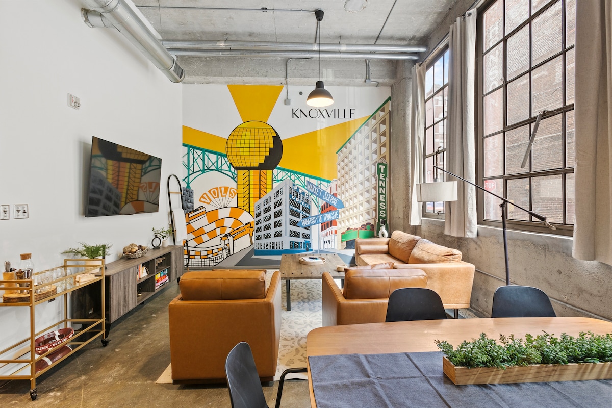 Gallery 25 Market Square está en el centro de Knoxville, con lo mejor que la ciudad tiene para ofrecer en restaurantes y entretenimiento a un corto paseo de distancia. El loft se encuentra justo al lado de la entrada del metro en Market Square. El mercado semanal de agricultores fuera de la puerta y la música en vivo de artistas locales y nacionales son inclusivos para todos los gustos. La estética del loft de la galería se desarrolló para convertirlo en un lugar de destino cómodo que fomenta la creatividad y cultiva recuerdos para toda la vida de nuestros huéspedes.
