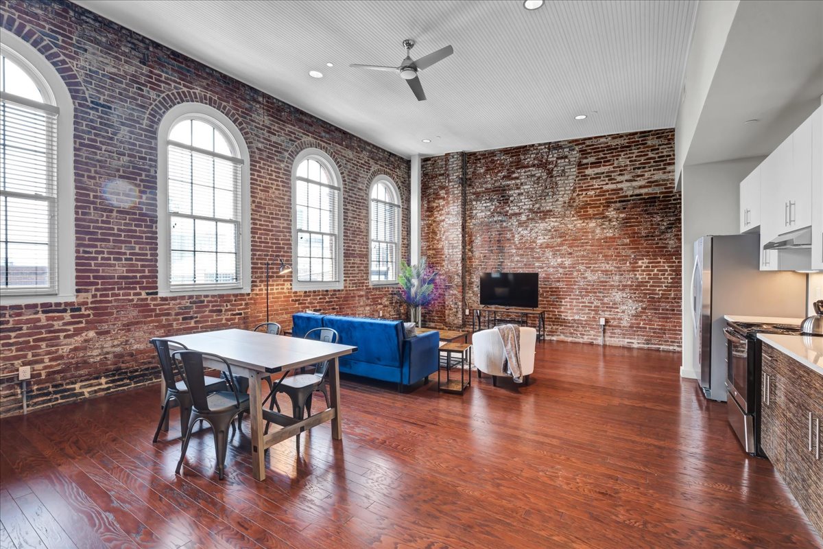 Hermoso condominio Downtown Loft con balcón privado con vistas a la calle 4. A poca distancia a pie de fantásticos restaurantes, bares, conciertos, juegos de pelota y mucho más. A pocos pasos del Palace Theater y de 4th Street Live y al lado del Seelbach Hotel. 1 AUTO privado, conectado al edificio para un fácil estacionamiento en el centro de la ciudad. El edificio tiene entrada segura y ascensor. El edificio es una antigua tienda departamental de ropa, BYCKS. Esta unidad del cuarto piso cuenta con techos a la vista, paredes de ladrillo y suelos de madera.