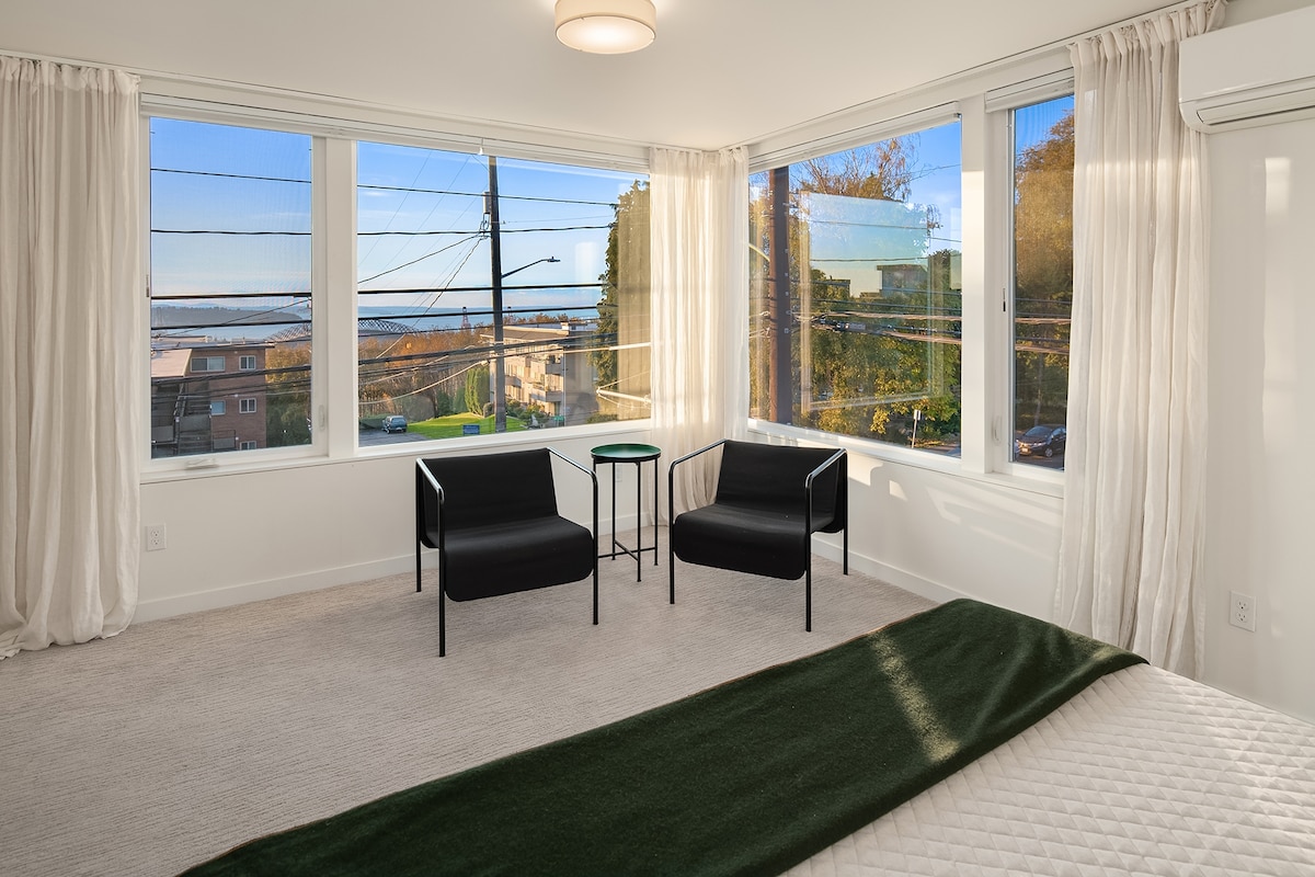 Disfruta de unas vistas impresionantes del horizonte de Seattle, Space Needle y las montañas olímpicas desde tu terraza privada en la azotea. A pocos pasos de los restaurantes y la vida nocturna de Capitol Hill, esta casa adosada verde de 4 estrellas combina el lujo con la comodidad. Relájate en la suite principal del ático, relájate en el dormitorio privado del primer piso y disfruta de acabados de alta gama, baños tipo spa y cocina de un chef. Con estacionamiento fuera de la calle, explorar Seattle es fácil. Ya sea por negocios o por placer, este retiro eleva tu estancia.