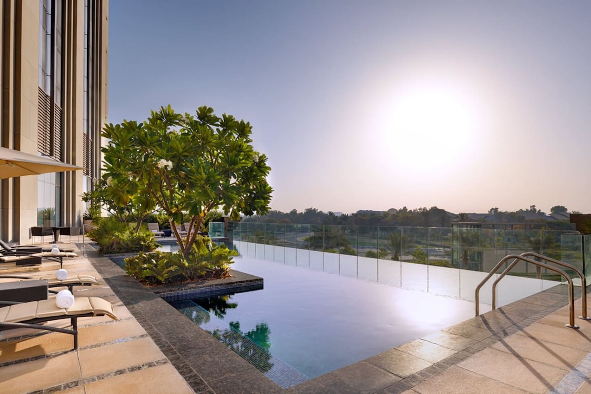 Piscina infinita más alta con vistas icónicas de Burj Khalifa