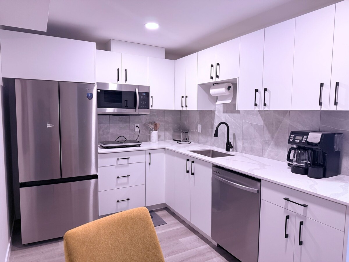Ubicada en una casa de nueva construcción con su propia entrada privada, esta acogedora suite en el sótano ofrece total privacidad y comodidad excepcional, perfecta para una estancia relajante. Disfruta de una amplia sala de estar, dos acogedoras habitaciones con baño, una cocina totalmente equipada, un rincón de estudio y lavandería de cortesía para estancias más largas. Ya sea que estés aquí para una escapada familiar, un viaje de trabajo o simplemente para relajarte, encontrarás un espacio limpio y acogedor que hace que cada momento sea verdaderamente agradable y maravillosamente cómodo.