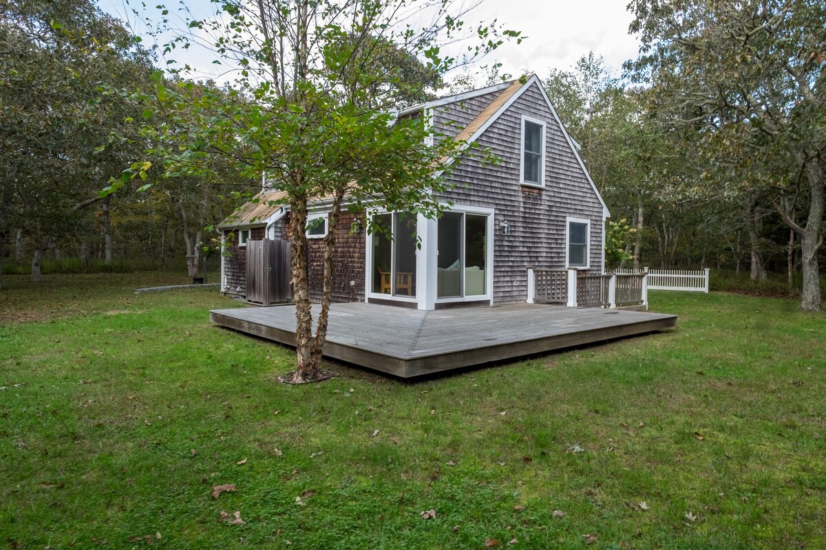 Charming Cape Cod cottage on semi-private road with and ocean view of Vineyard Sound. Renovations completed in mid-July, 2020. Three BR, 2 private attached baths, 1 semi-private bath, fully equipped kitchen, patio with BBQ grill, gas fireplace, cable-TV, WiFi internet, large second-floor deck, a/c.. Close to Vineyard Ferry, bus station and town. Seasonal rent. Please complete a reservation request to determine the rent in effect for your requested dates.