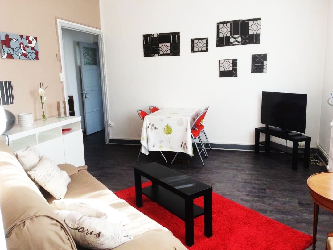 Apartamento de 64 m² con balcón cocina equipada, 1 dormitorio y sofá esquinero convertible, baño equipado con un balneario Lugar de aparcamiento privado cerca de todos los servicios, restaurante, autobús, casino, playa, lavandería,panadería... Puesta a disposición lavavajillas, cafetera (Dolce Gusto), lavarropas, TV dormitorio y salón. Posibilidad de tener a disposición ropa de baño ( 2 toallas y 2 albornoces ) 10 euros de suplemento. Persona adicional 15 euros por persona. Más allá de 2
