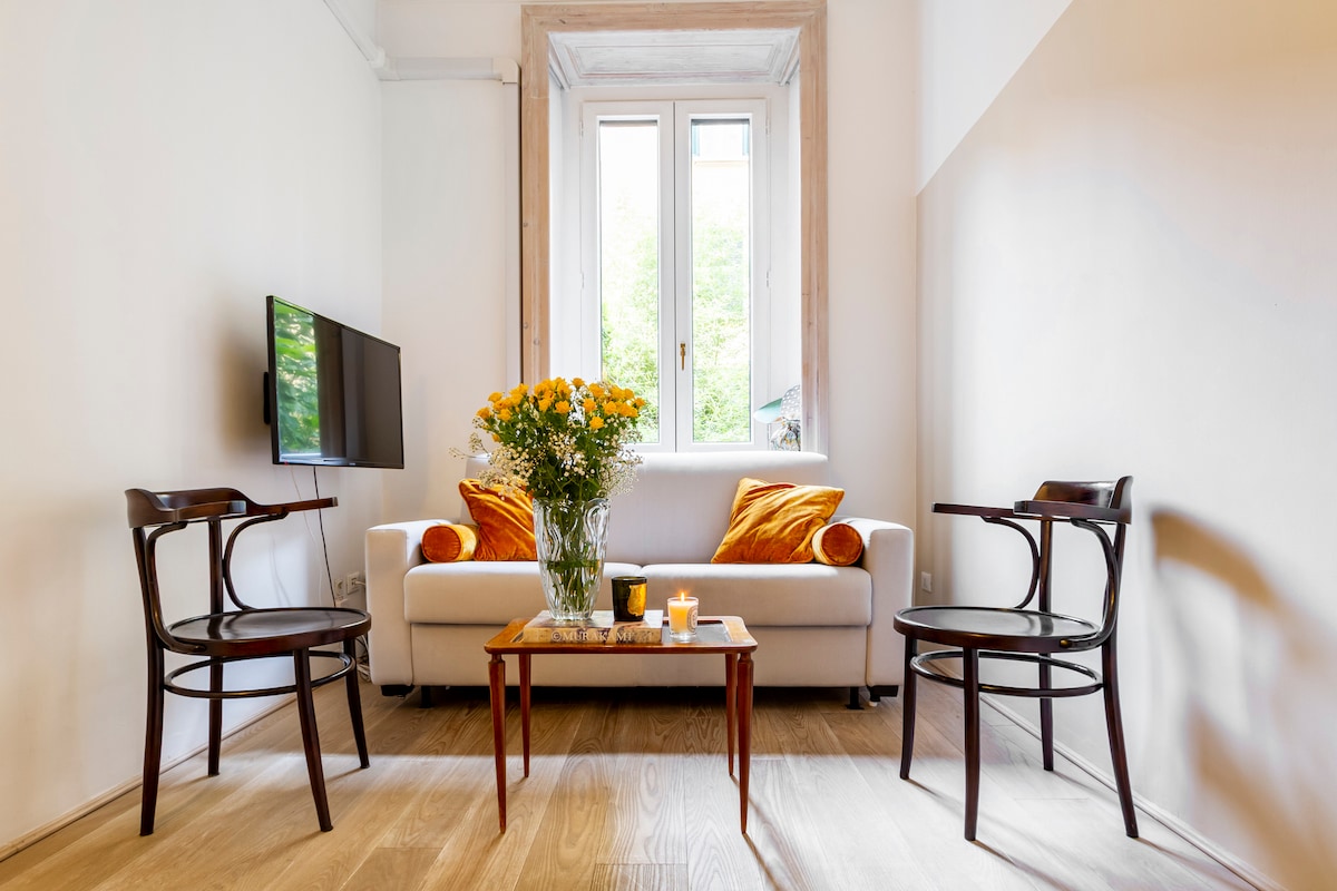 Un loft elegante y luminoso ideal para viajeros, profesionales/trabajadores remotos y huéspedes de ocio por igual. 60 metros cuadrados con vigas a la vista y terraza privada. Wi-Fi muy rápido de 1 Gbps de fibra, escritorio grande, espacio de trabajo cómodo, aire acondicionado y comodidades modernas. Situado en una zona moderna y cosmopolita, llena de arquitectura Art Nouveau, cafés independientes, bares de diseño y restaurantes internacionales. A pocos minutos a pie de Corso Buenos Aires, una de las calles comerciales más largas de Europa.