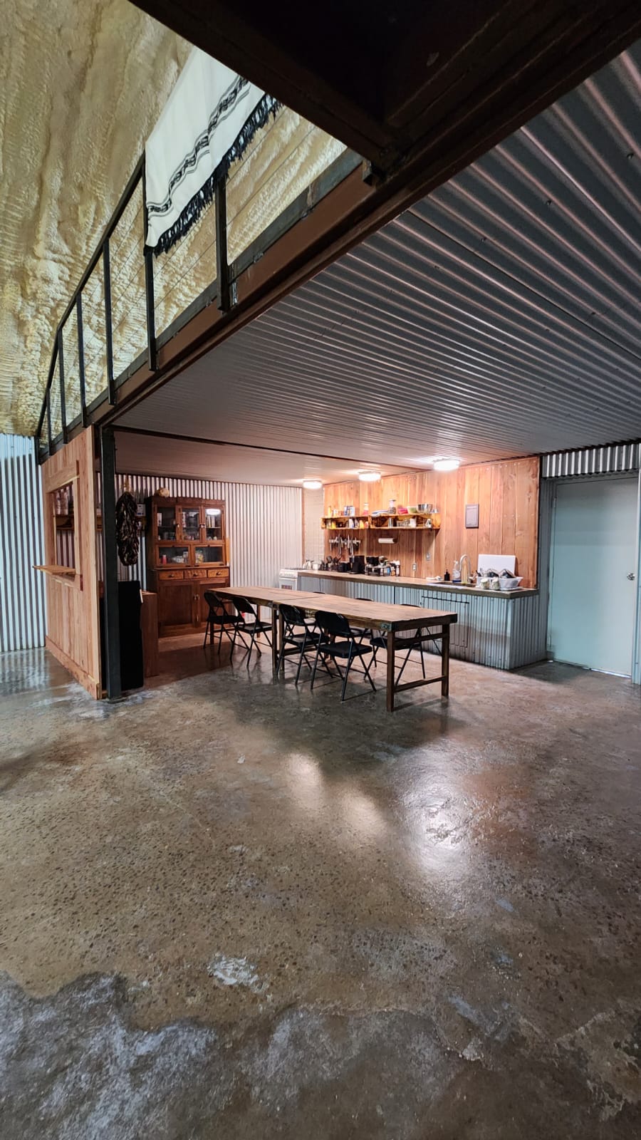 HUGE open high ceiling building to house your group! Completely remote quonset hut building on private ranch located 27 miles North of Big Bend National Park. There are 6 bunk-beds (12 twin beds) and 2 king size beds in two lofts. 3 showers and 3 toilets designed to conserve water, full kitchen, and grill outside. Enormous indoor entertainment area and a outdoor deck with a stunning view for evening grilling, watching the sun set, or stargazing. Max 16 people strictly enforced to save water.