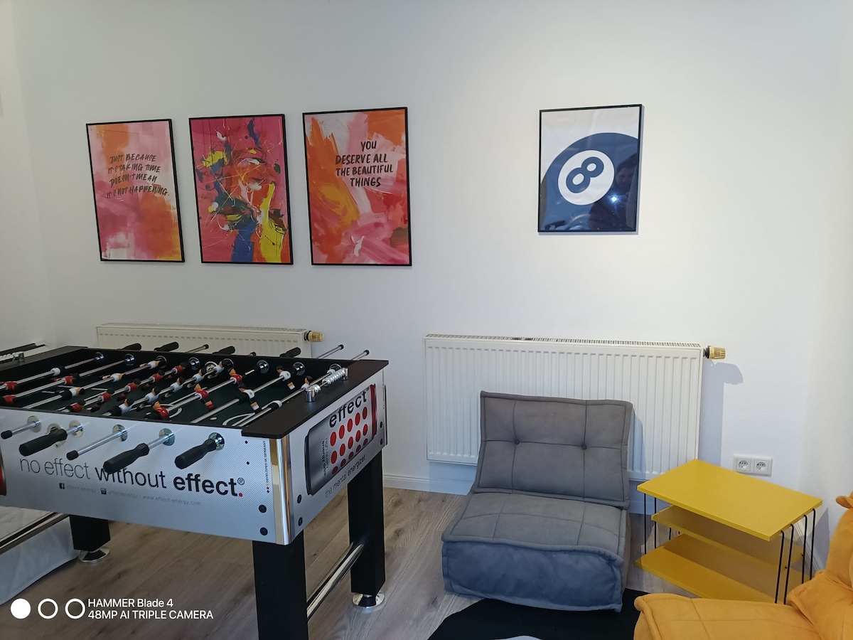 ** Apartamento moderno cerca de la estación central de Düsseldorf ** ¡Te damos la bienvenida a nuestro departamento de 2 habitaciones! Ofrece dos amplias habitaciones, una cocina moderna con todos los electrodomésticos de cocina necesarios y una mesa de comedor. Con unos 55 metros cuadrados, un televisor con Netflix y espacio para hasta 4 personas, es ideal para familias o grupos. A 5 minutos a pie de la estación central y a 10 minutos de Königsallee. Muchas tiendas están muy cerca. Convenientemente ubicado en la planta baja y de fácil acceso.