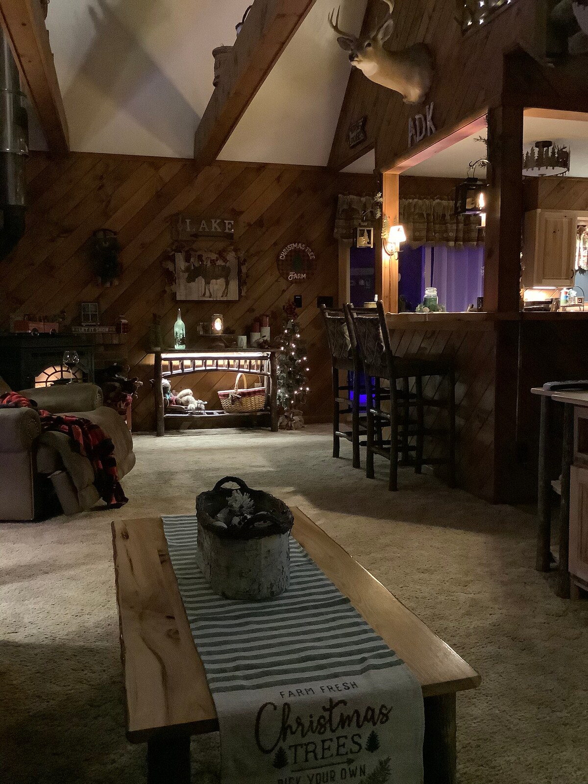 ¡NUEVO ANUNCIO! Casa de 4 dormitorios y 2 baños durante todo el año con interior de pino en una tranquila calle privada cerrada. Excelente acceso al sendero para motos de nieve a la derecha de Big Moose Road, a solo 1 minuto de Big Moose Yamaha. Totalmente amueblado y actualizado. Los huéspedes deben proporcionar sábanas, fundas de almohada y toallas. Ofrecemos mantas, edredones y almohadas. Wifi rápido e internet FireStick TV incluido. Fogata exterior con sillas, barbacoa de gas nueva y mesa de picnic. El sótano tiene tablero de dardos, mesa de billar y futbolín.