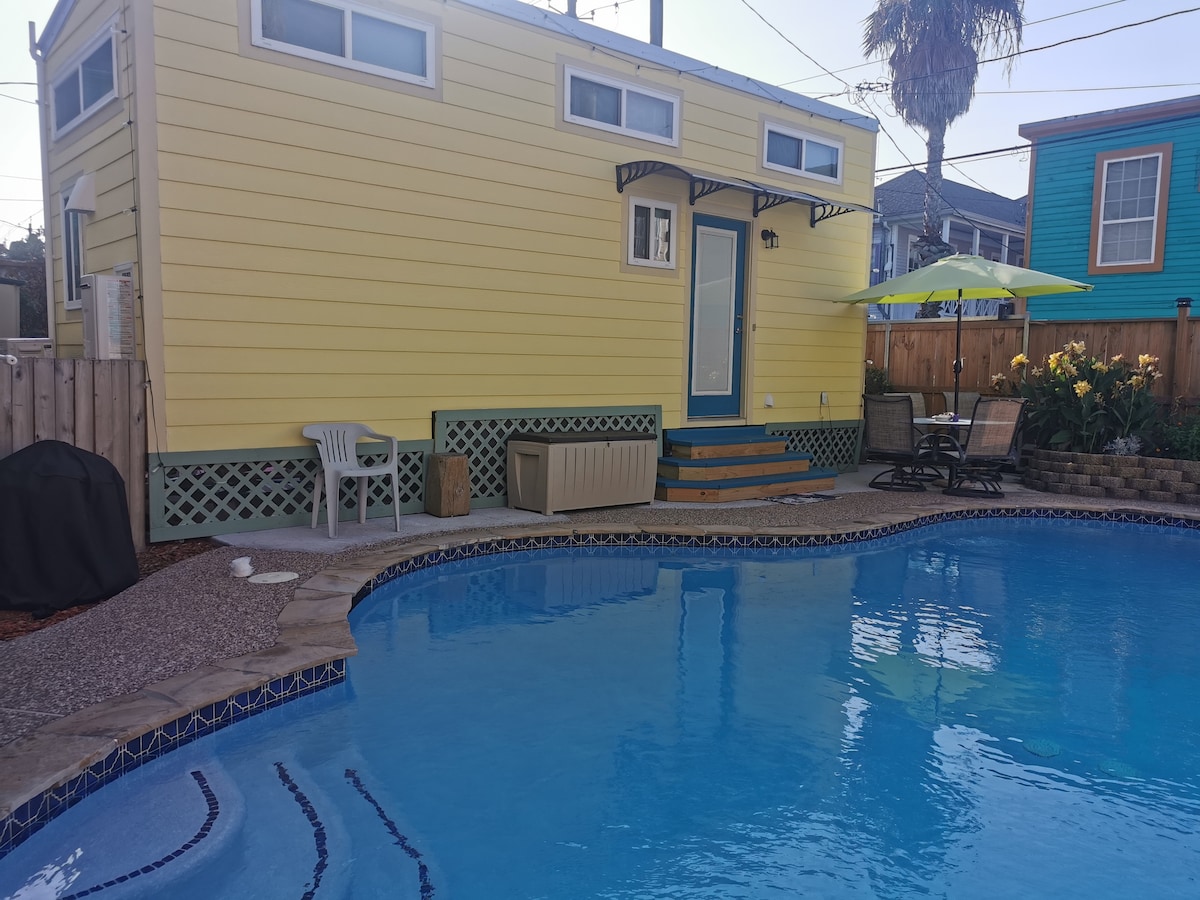 Este oasis es un refugio junto a la piscina en el corazón del centro de Galveston. A poca distancia a pie de restaurantes, tiendas, terminales de cruceros y lo mejor que el centro de la ciudad tiene para ofrecer. El Tiny tiene capacidad para 5 personas con cama tamaño king, tamaño completo y sofá Futon plegable. El área privada de la piscina exterior ofrece mucho espacio para estirarse, cenar y relajarse. La piscina es un final refrescante para un caluroso día de diversión en la playa o compras en el centro de la ciudad.