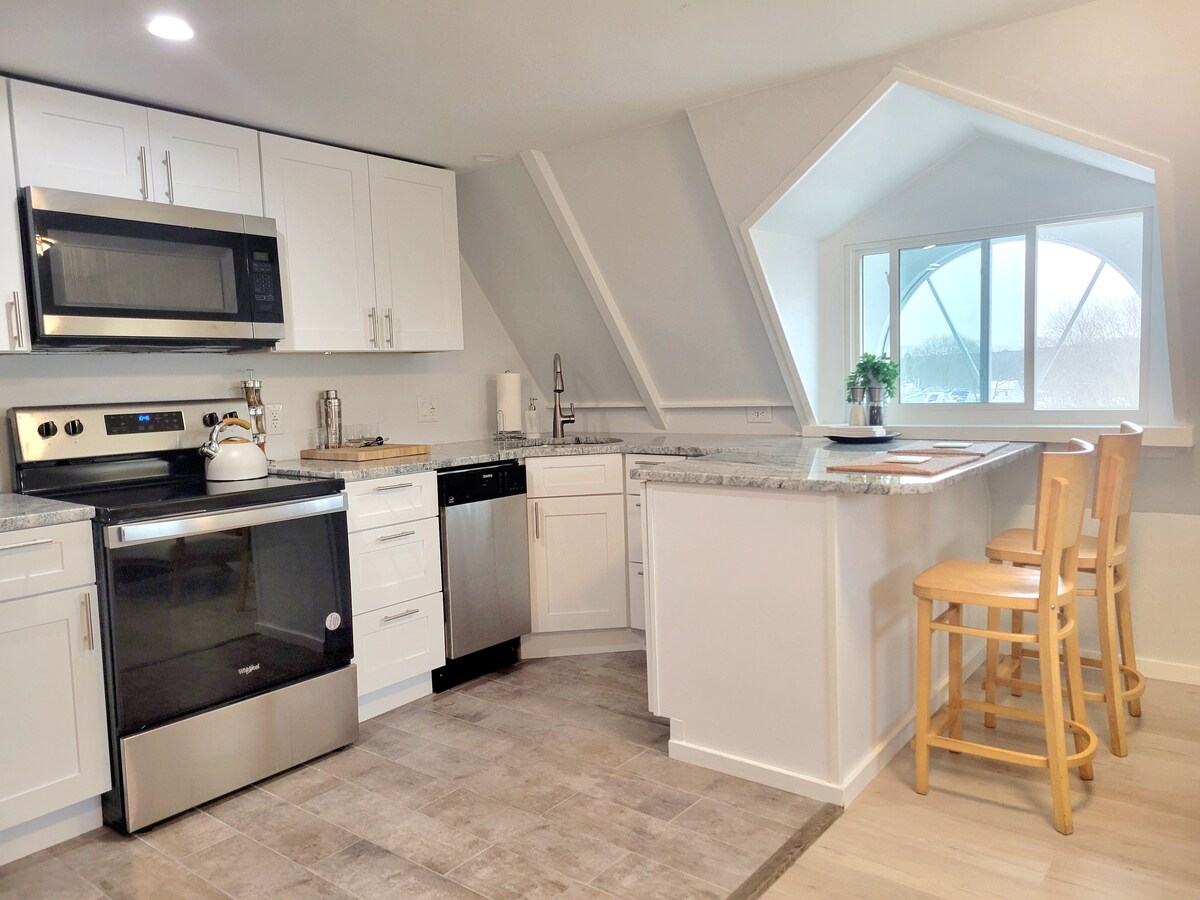 The Cottage at The Grange se encuentra en el tranquilo río Potowomut. Es una hermosa casa recién renovada de 2 dormitorios (1 cama tamaño king y 2 camas individuales) y 2 baños completos con todas las comodidades y servicios modernos que se esperan de un alquiler de lujo a corto plazo, manteniendo el encanto histórico de esta finca colonial. Prepara una comida gourmet en la cocina abastecida o haz una barbacoa en la terraza. Situada en 11 acres prístinos, disfruta de canchas privadas de tenis/pickleball, acceso en kayak a la bahía de Greenwich y mucho más.