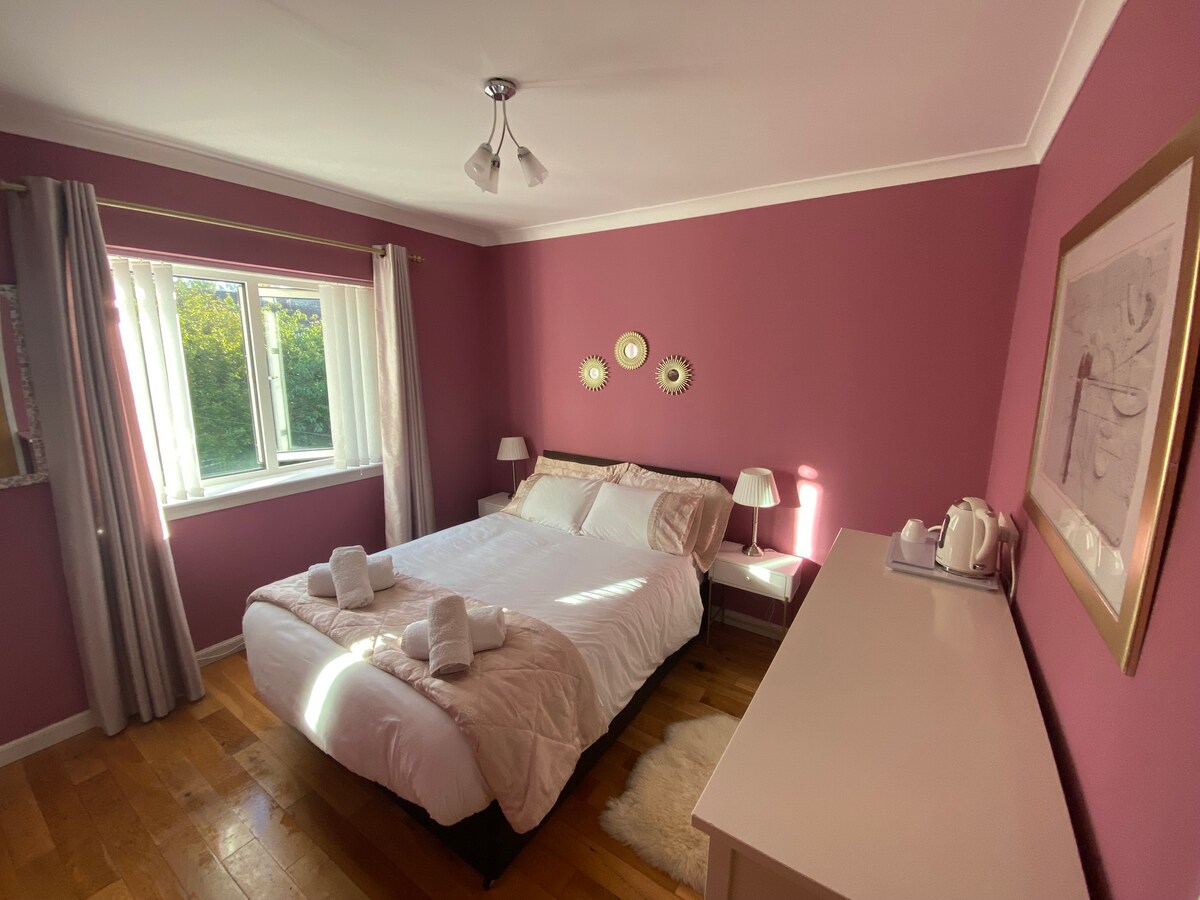 Habitación doble en un apartamento amplio y luminoso en una zona verde tranquila y frondosa del lado sur de Glasgow. 1 anfitriona amistosa en los años treinta. 10 minutos a pie de Shawlands y 15 minutos en tren al centro de la ciudad de Glasgow.