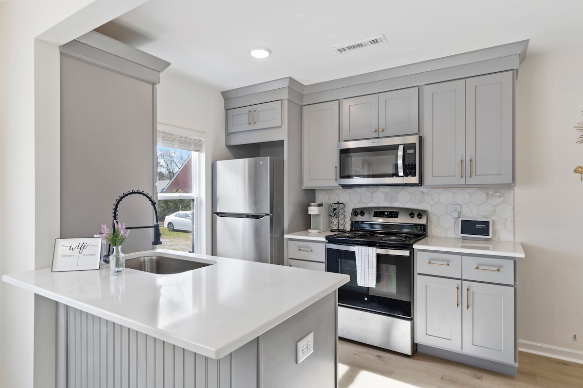 ¡Bienvenido a mi casa ubicada en el centro de la hermosa Rocky Mount, Carolina del Norte! Con 3 camas tamaño queen, nuestra acogedora casa de 3 dormitorios es perfecta para familias o grupos de amigos que visitan la zona. Cada habitación está equipada con TV y Netflix, para que puedas relajarte y descansar después de un ajetreado día. Nuestra cocina totalmente equipada es perfecta para cocinar tus comidas favoritas y, con una lavadora y secadora disponibles, puedes empacar ligero y mantenerte fresco.