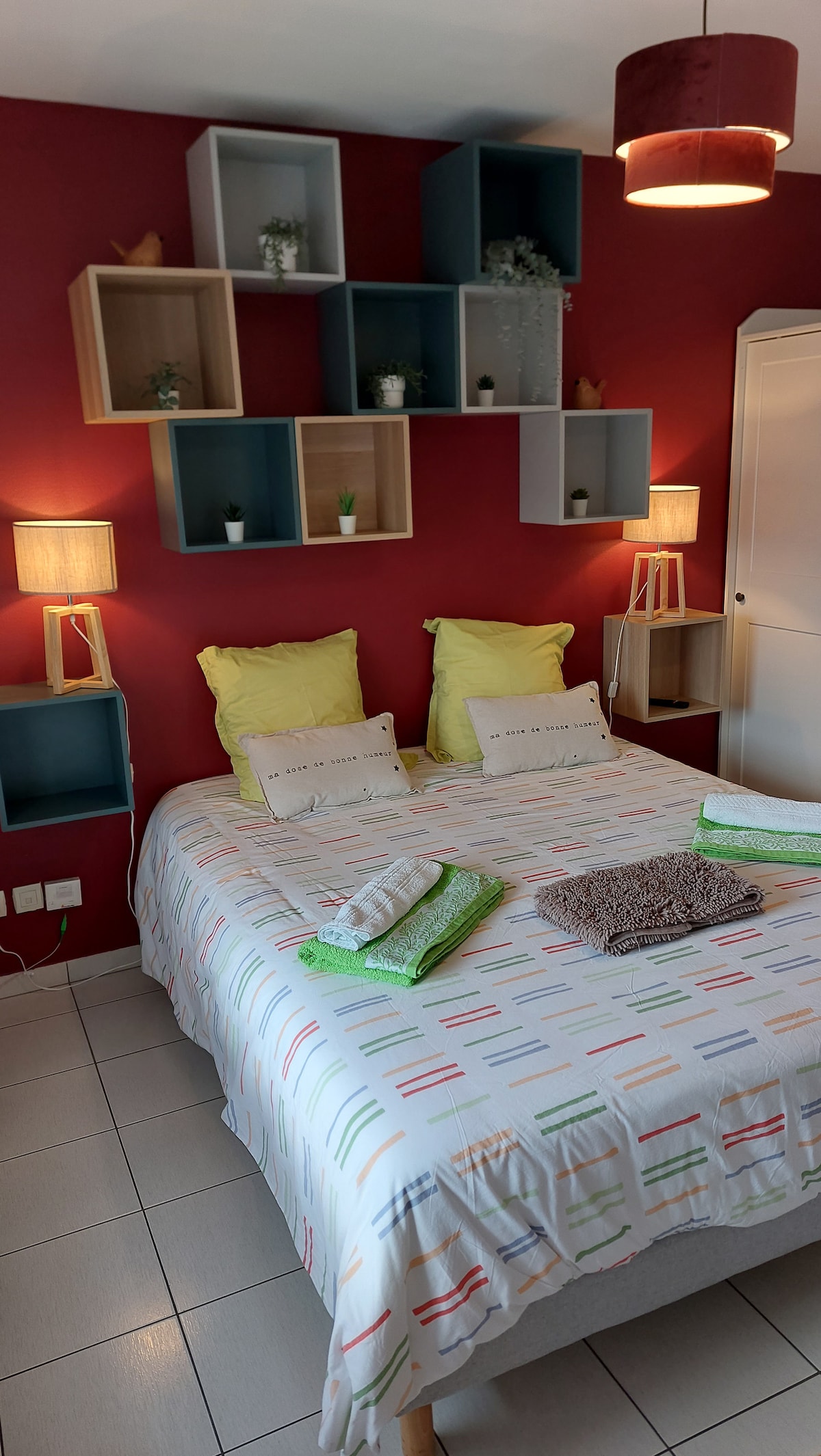 Eguisheim, cuna de los viñedos de Alsacia, es una antigua ciudad amurallada, situada al pie de los viñedos cerca de Colmar. El apartamento está situado en una de las calles más pintorescas del centro histórico, la rue du Rempart Sud, con sus casas con entramado de madera ricamente floridas. Se encuentra en el primer y segundo piso de un antiguo granero que hemos renovado y tiene capacidad para 4 a 6 personas. Ofrece todas las comodidades necesarias para una estancia agradable.