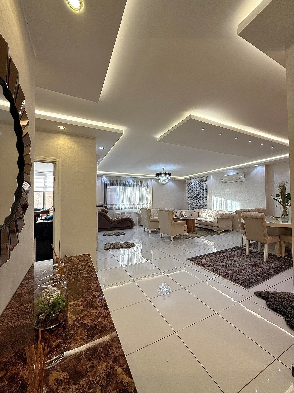 Disfrute de una suite moderna y elegante, decorada con cuidado para un ambiente tranquilo y refinado. Situado en el animado Boulevard Mellinium, el alojamiento ofrece un acceso ideal: a 15 minutos del aeropuerto, a 5 minutos de Akid Lotfi, y rodeado de tiendas, cafés y servicios. Una ubicación perfecta para descubrir Orán alojándose en un espacio cómodo y de lujo.