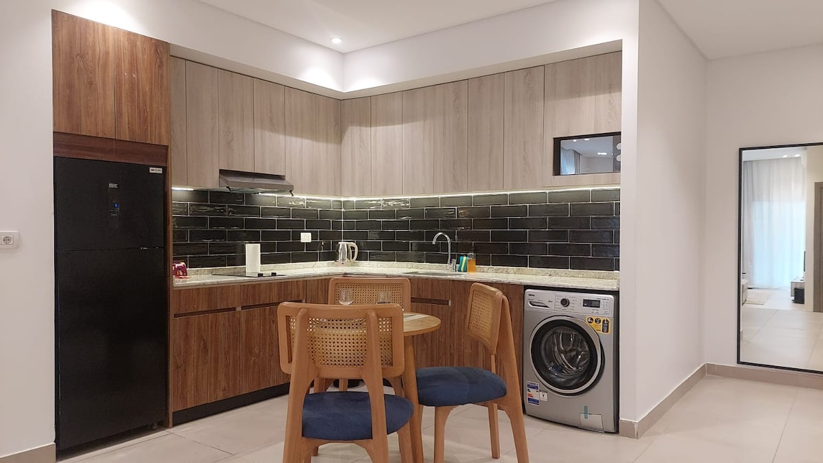 Elegante apartamento de 1 dormitorio en One Katameya Compound, perfecto para parejas y viajeros de negocios. ✔ Diseño de estilo hotelero y estancia cómoda ✔ Acceso a la piscina ✔ Wifi rápido y aire acondicionado ✔ Cocina totalmente equipada 📍 Ubicación privilegiada en Nueva El Cairo, cerca del CFC y de las carreteras principales Disfruta de un entorno tranquilo, seguro y de primer nivel con todo lo necesario cerca.