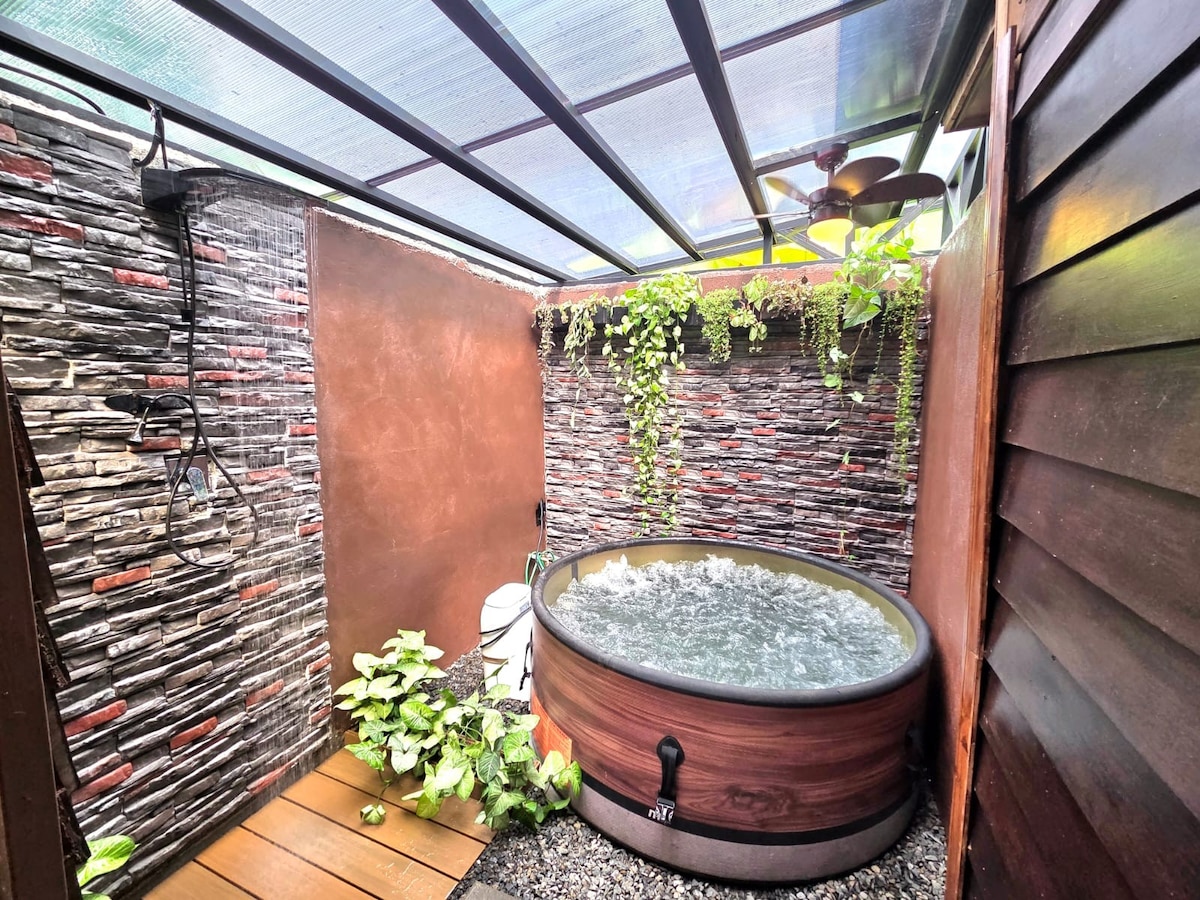 Arenal Love Cabin, ¡tu retiro romántico perfecto! Disfruta de impresionantes vistas del volcán Arenal y el lago mientras te sumerges en el jacuzzi privado, una experiencia verdaderamente inolvidable. En el interior, encontrarás una cómoda cama tamaño king, una acogedora zona de estar, aire acondicionado, TV inteligente y mantente conectado con buen wifi. El baño privado cuenta con ducha caliente y el área de cocina está equipada con mininevera, cafetera, licuadora, microondas y sartén eléctrica. ¡Crea hermosos recuerdos en esta encantadora escapada!