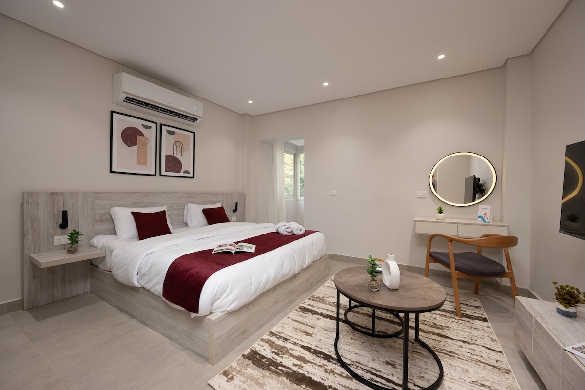 Bienvenido a uno de nuestros tres estudios excepcionales, enclavado en el barrio de élite de Degla, Maadi. Diseñado por un talentoso diseñador de interiores, este estudio combina armoniosamente la comodidad, la elegancia, la privacidad y la creatividad de una manera que solo un verdadero profesional puede lograr. Cada centímetro de este alojamiento ha sido diseñado con cuidado, ofreciendo un ambiente cálido y acogedor que se siente como si estuviera hecho solo para ti. Es realmente mágico. Tómate un momento para revisar detenidamente nuestras normas de la casa antes de reservar.