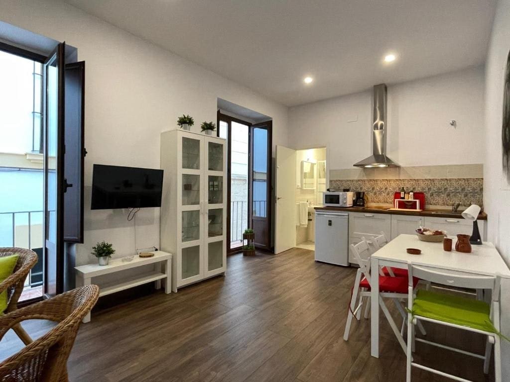 Estudio exterior. Ubicado en el corazón del céntrico barrio de San Miguel, con vistas al monumento a Lola Flores, y junto a la gastro-taberna Atuvera. cerca de la Plaza del Arenal y el Mercado Central de Abastos. El Estudio se ubica en planta baja, con acceso directo desde el patio principal. Dispone de wifi, aire acondicionado. Se repondrán las toallas gratuitamente cada tres días. (Studio adaptado para movilidad reducida)