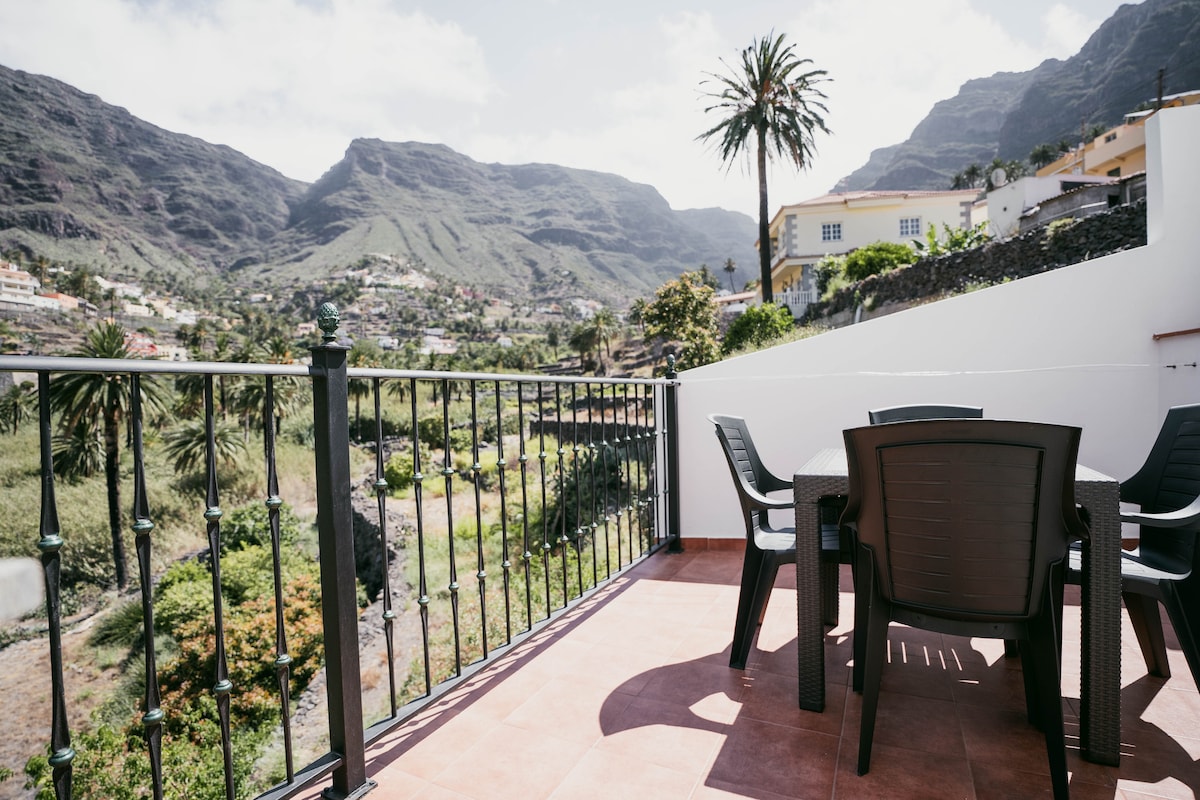 Nuestro alojamiento Tosca 1, decorado con mucho cariño, te ofrece un ambiente único de bienestar, una gran terraza con impresionantes vistas panorámicas y al mar en medio de la naturaleza salvaje y romántica de La Gomera. Tienes todo un piso con acceso privado sin escaleras, así como una amplia zona de comedor exterior cubierta como posibilidad adicional para retirarte a pasar tiempo a solas. El alojamiento está situado en el Valle Gran Rey, en el distrito de Casa de la Seda, y a solo 2 km del valle hacia arriba desde la playa.