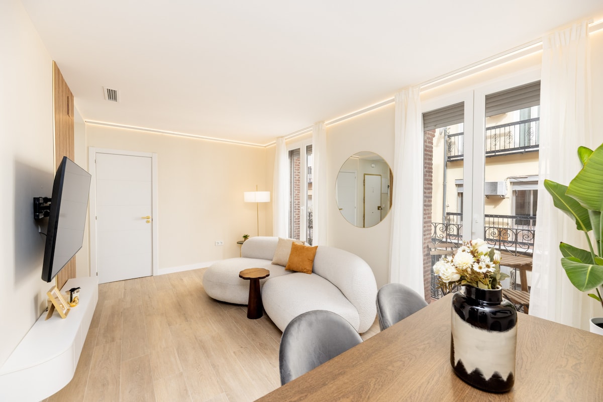 Stylish, calmed and recently renovated ample apartment within a historic building in down town Madrid in the charming “Barrio de las letras” neighborhood. The apartment can host up to 6 adults and comes with breakfast & daily housekeeping included at no extra cost. Ideally located at the very heart of Madrid at a walking distance from all of the city’s museums and cultural sites. The apartment just got renovated and was featured in several architecture and design magazines.