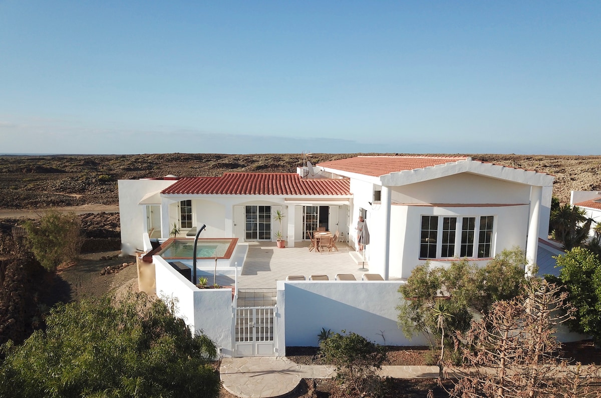 Ubicado en una zona exclusiva de Lajares justo debajo del volcán ‘Calderón Hondo’. La casa consta de dos dormitorios, un baño de conexión, inodoro, trastero, cocina, sala de estar. Cubierta de madera con ducha al aire libre y piscina climatizada (6 x 2,5 m). Diseño minimalista con amplio acristalamiento que proporciona excelentes vistas a uno de los paisajes más hermosos del norte de Fuerteventura.