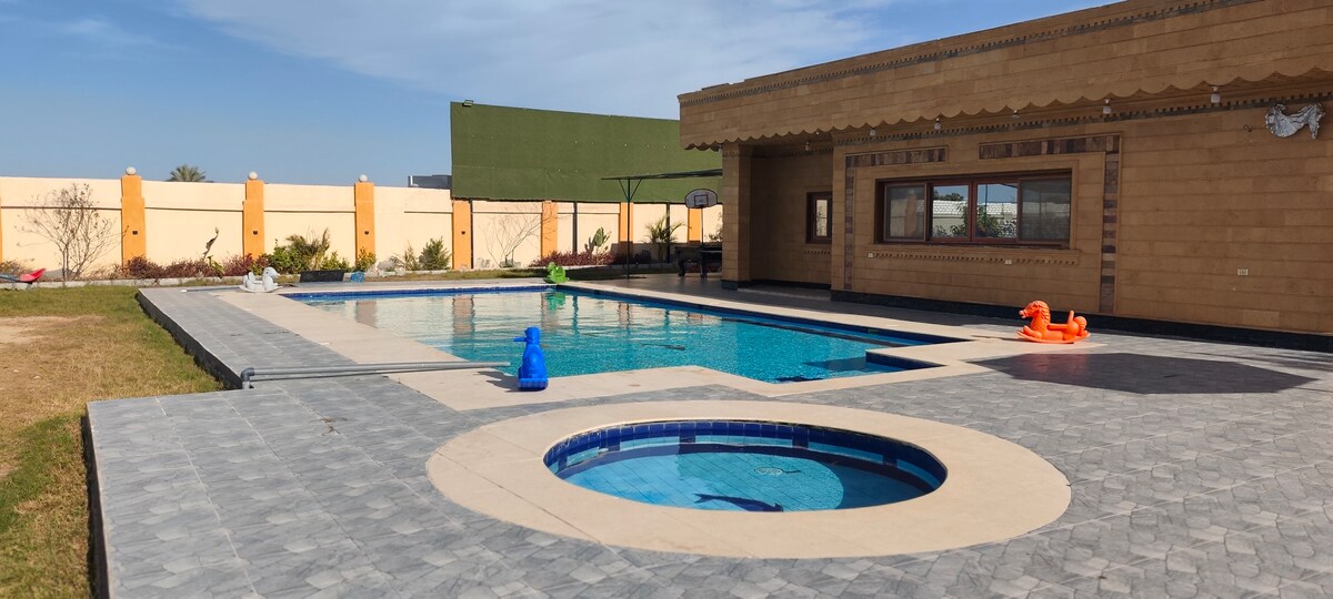 Moderna y elegante villa espaciosa + bonita casa Sunny Garden en Golf Al Solaimaniyah a 15 minutos del aeropuerto internacional de Sphinx. La Villa está rodeada de más de 800 m2 de jardín privado, piscina y bosque de 10*5, lo que garantiza privacidad y paz. Pasea por los jardines formales, relájate junto a la piscina o pasa el día en el gran nuevo Museo Egipcio y las Pirámides de Guiza están a solo 25 minutos. La villa está bien conectada, con TV vía satélite/TV INTELIGENTE y acceso Wi-Fi.