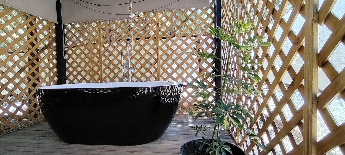 ¡CABAÑA PRIVADA Y TINAJA PRIVADA CLIMATIZADO AL AIRE LIBRE! Solo 15 minutos de las playas de Quintay y Tunquén, a 1.5 horas de Santiago, es este hallazgo HECHO PARA PAREJAS que buscan relajar, recargar, celebrar, y divertirse. Su reserva también incluye el uso del "QUINCHO" privado. Hay más de 70 comodidades modernas de calidad, está bien equipada, muy limpia y luminosa, con una estética encantadora. Ofrecemos COMIDA para disfrutar también con aviso previo para confirmar.