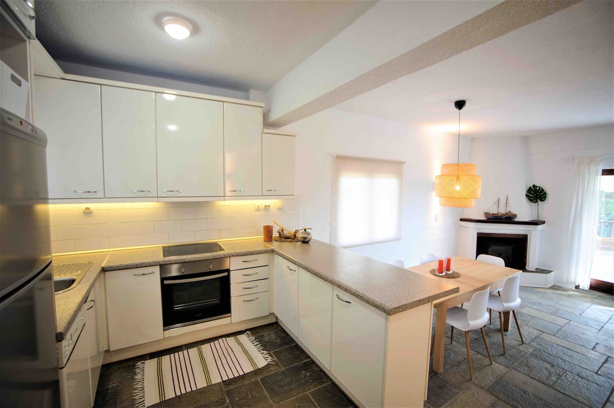 Retiro de tres niveles con vistas al mar en Afytos con acceso a la playa y vistas impresionantes🌊🌴 ¡Bienvenido a nuestro espacioso apartamento de tres niveles, diseñado para momentos inolvidables de verano en Afytos! Ubicada a solo 2 minutos en coche del centro de Afytos, la casa ofrece el equilibrio perfecto de comodidad y tranquilidad. Ubicado en una zona tranquila, ofrece una escapada serena. El departamento cuenta con su propio espacio de estacionamiento privado para tu comodidad.🅿️