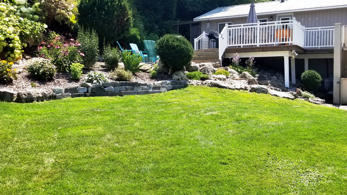 🇨🇦 Una tranquila suite de 2 camas tamaño queen, con vistas al lago, a 3 minutos a pie de Erie Rest Beach, a 3 minutos en coche (a 20 minutos a pie) del pueblo. Todo el equipo de playa, incl. ¡Sillas, alfombrillas de playa, toallas, tienda de campaña a la sombra, flotadores, sombrillas! Montones de juegos de mesa en interiores, todo lo que necesitas para cocinar o hacer una barbacoa. ¡Relájate, toca, compra, escucha música en vivo, come fuera en excelentes restaurantes o entrega a domicilio! ¡Muchas cosas que ver y hacer! Disfruta de la naturaleza (ciervos y águilas calvas) en una tranquila terraza privada. ¡El aire acondicionado está helado, frío o una acogedora chimenea de gas!