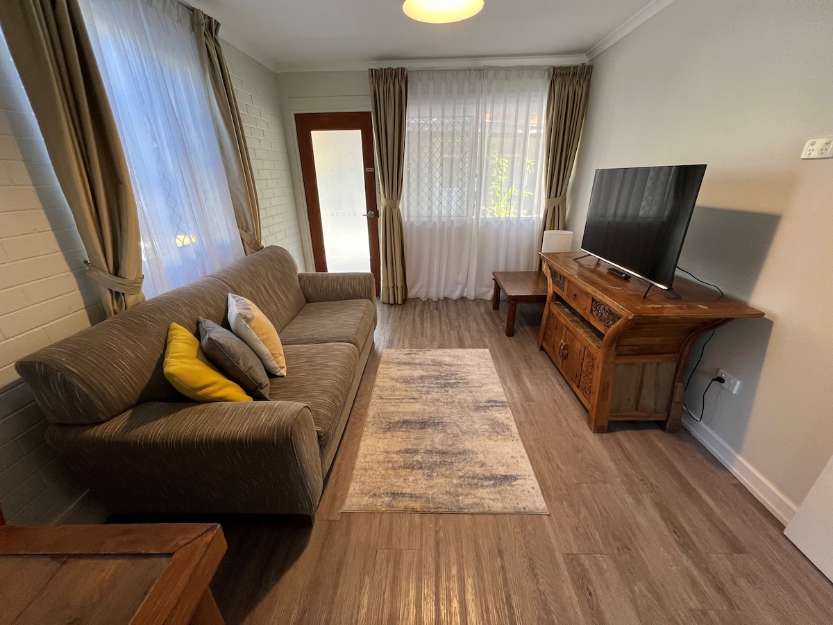 Departamento estudio independiente con cocina americana y baño privado. Tienes acceso separado a la lavandería y al patio trasero. Este apartamento tipo estudio está cerca de un importante centro comercial, RSL, restaurantes, pubs, tienda de la esquina con comida para llevar y la playa. La habitación en sí ofrece Wi-Fi gratuito, Netflix, aire acondicionado con sistema dividido y cafetera/tetera. El estacionamiento fuera de la calle está disponible bajo la vela a la sombra, pero recuerda que también necesito estacionar mi auto en la entrada, así que estaciona a un lado.