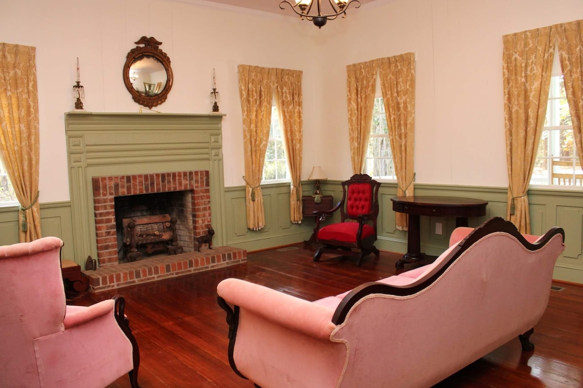 Bellamente situado en la granja McDaniel Pine en Wade, Carolina del Norte, te sentirás como en casa en la cabaña Bluff. Una configuración de estudio con una cama tamaño queen y 2 sillas que se convierten en cómodas camas individuales. También hay un colchón de aire disponible. Cómoda sala de estar con TV de pantalla plana grande y espacio de trabajo de escritorio dedicado. Baño privado, ducha a ras de suelo y una pequeña zona de cocina con placa eléctrica, ollas, sartenes, cafetera, microondas y nevera. ¡Bonito patio exterior con chimenea y acres para pasear!